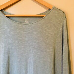 Very good preowned condition, icy pale blue, lace-hemmed, stretchy rayon top by George. Super cute and the lace is such a gorgeous touch. Have it peeking out under a vest or worn on its. Lightweight and comfortable, this top provides both style and comfort throughout every season.