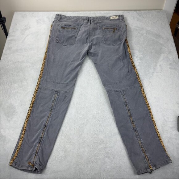 Robin Jeans Men's Size 40 EU Racer Slim Fit Jeans with Flaws Mentioned and Shown with the button needing to be reattached to the jeans, right rear lower zipper missing handle and distressed, left rear back pocket missing zipper handle, rear right leg has a hole that needs to be fixed.