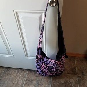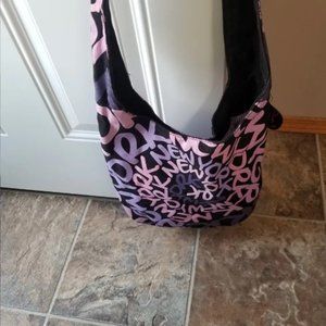 In overall very good condition. Boho hobo style. Pink and Purple canvas Crossbody Tote