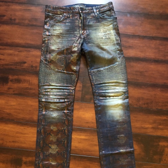 How about some more info... some pics of the tags, inseam measurement, maybe a pic showing the rest of the two legs on this beautiful looking pair of jeans, how about a much better discription other then "worn" and "shinny like"