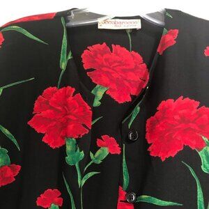 Rocco Barocco Vintage 80s Silk Floral Shirt Blouse Button Flower Top Rare Red M