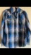 Stylish plaid blouse with snap diamanté buttons. Features blue and black tones with silver thread design. Embellished with decorative stitching. Beautiful brand new shirt with tags on