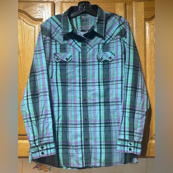 Rock 47 by Wrangler Women's Diamond Snap Western Cowgirl Shirt Size XXL