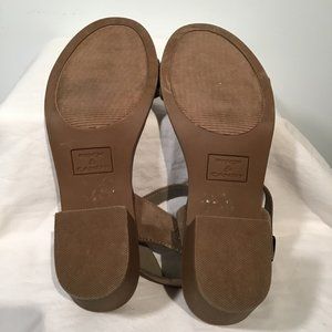 Add a stylish and comfortable pair of sandals to your shoe collection with these Size 9 Rock & Candy by Zigi Rosalyn sandals. The faux tan suede upper material and tassel accents make them perfect for both casual and workwear occasions. The buckle closure ensures a secure fit while the low block heel provides comfort for long hours of wear.