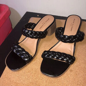 Rock & Candy by Zigi Black Slip On Sandals 10 Braided Style 2.5” Square Heel