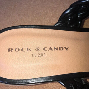 Rock & Candy by Zigi Black Slip On Sandals 10 Braided Style 2.5” Square Toe