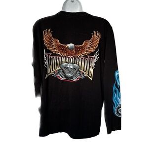Rock Eagle T-shirt Long Sleeve Bikers Graphic Large Eagle Print Black Size M