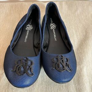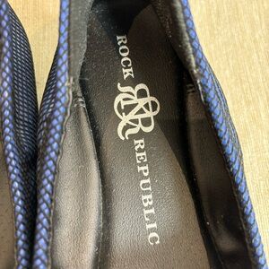 Rock & Republic Sz 7.5 Ballet Flats Blue & Black Pattern and Black Logo on Toe. Cute and comfortable. Dress up or down.