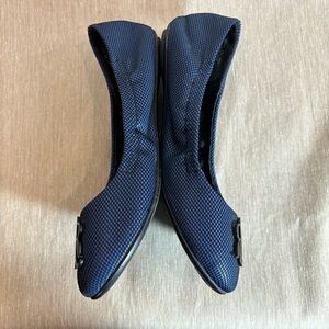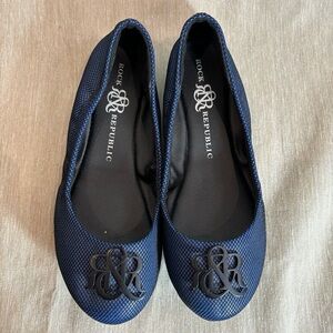 Rock & Republic Sz 7.5 Ballet Flats Blue & Black Pattern and Black Logo on Toe