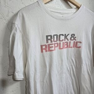 Elevate your casual style with this Rock & Republic white t-shirt. Perfect for everyday wear, it offers comfort and a sleek look.