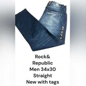 Rock & Republic,34x30 NWT ,straight,faded,jeans,men Biker,moto,rodeo,nice fit