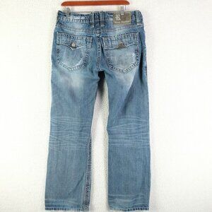 Rock Revival Jeans Mens 33X32 Blue Layne Relaxed Straight Stone Wash Distressed