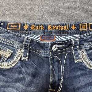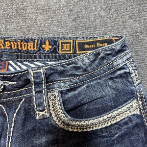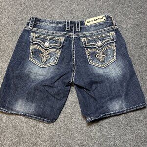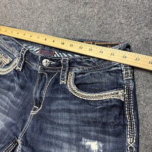 Rock Revival Kaylee Size 30 Easy Short Blue Embellished Distressed Thick Stitch