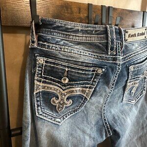 Step out in style with these Rock Revival mid-rise capri jeans, size 29. Crafted in a classic jean color with touches of distressing, these jeans are loaded with character and perfect for any casual outfit.
