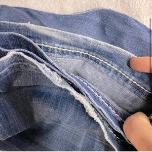 These jeans have been hemmed, see measurements in pics. Good used condition. Minimal signs of wear. No holes or stains. No pilling, puckering or pulls. Minor signs of wear on hems, see pics. Size 29, measurements in pics. Please look at all pics and zoom in for a closer view