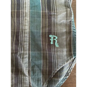 Plaid with rhinestone front pockets. Convert to 3/4 sleeves.