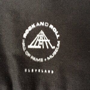 Rock & Roll Hall of Fame Museum Mens Button Shirt Large Ivory Black Short Sleeve