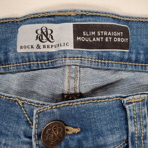 Rock and Republic Jeans Mens 34x32 Blue Denim Slim Straight Stretch Faded Grunge