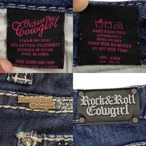 Rock and Roll Cowgirl Low Rise Studded Embellished Dark Blue Boot Cut Jeans 30