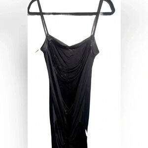 Rock & republic blck chain detail low back spaghetti strap evening party dress 8