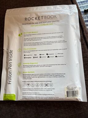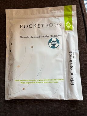 Smart Rocketbook Core notebook, super cool. It takes your handwritten notes and instantly blasts it to your favourite cloud services using their free App. It's endlessly reusable, just wipe pages with water to erase and reuse. Comes with a Frixion pen inside. This one is the black dot grid executive size, 6โ x 8.8โ. Brand new, sealed package, never opened.