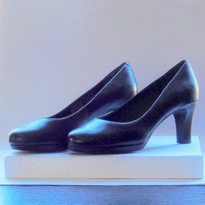 These Rockport heels have a cushioned insole for extra comfort and a slim platform for added height. They are a US size 5.5 B width.