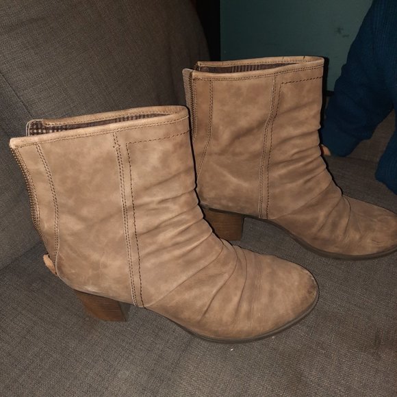 Rockport Tan ankle booties, Purchased new, GUC, Very cute, warm and comfy but have trouble with heels now so have to let go :(