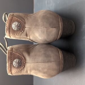 Rockport woman's brown leather Chukka lace-up ankle booties.
