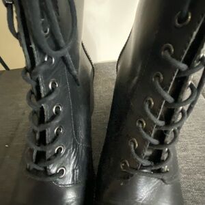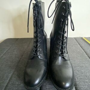 Rockport Womens Black Leather Lace Up Casual Work Heeled Boot- Sz- 8