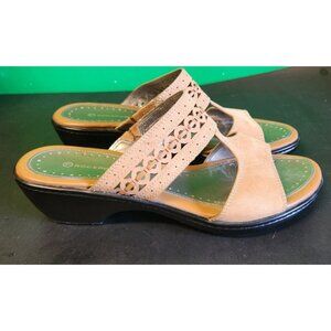 Rockport Womens Slip on Suede Sandals Cutout Size 8 Very Good Condition