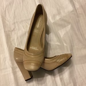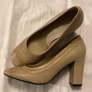 NWOT nude coloured 3 1/2” block heels. Square toe pumps with decorative stitching along with adiPrene cushioning makes these the perfect shoe for all occasions.