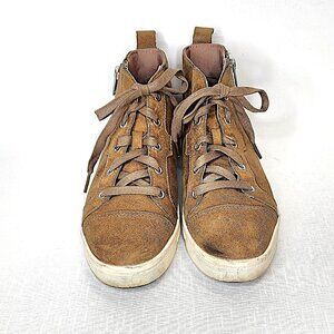 Rockport dark beige or light brown suede and brushed leather high top sneakers with cushioned insole