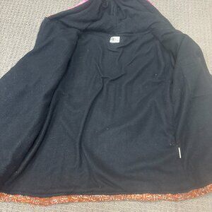 Has some loose threads and piling throughout on the interior of the fleece lining. Please view photos for details and measurements