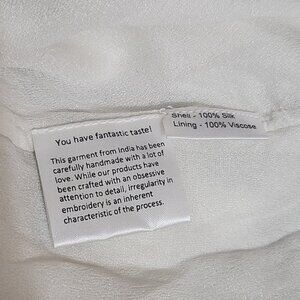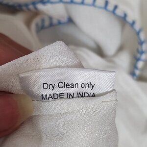 Self: 100% silk. Lining: 100% viscose. Dry clean only. Whipstitch trim. V neck front. Sleeveless. Embroidered detail.