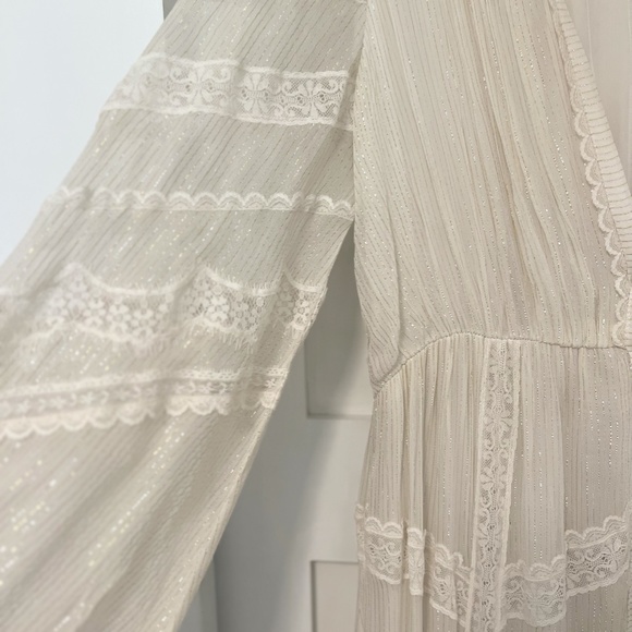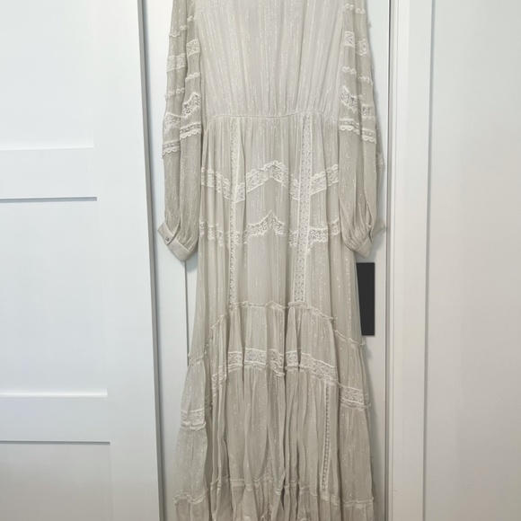 Embroidered long dress with an ethereal, maxi silhouette and blouson sleeves.
