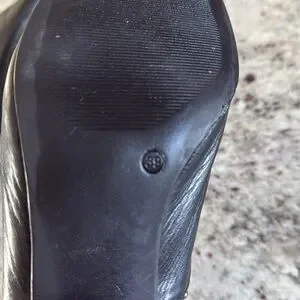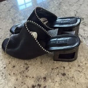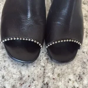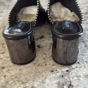 leather mule with silver ball silver heel .2.5 inches. Excellent condition.