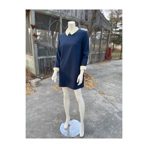 Roem Modern 60s Inspired Micro Mini Shift Dress Navy Ivory Contrast Collar & Cuf