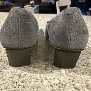 One floor on bottom of shoe shown in picture. Otherwise, these shoes are in great condition. Souls of shoes also have a rubber grip.