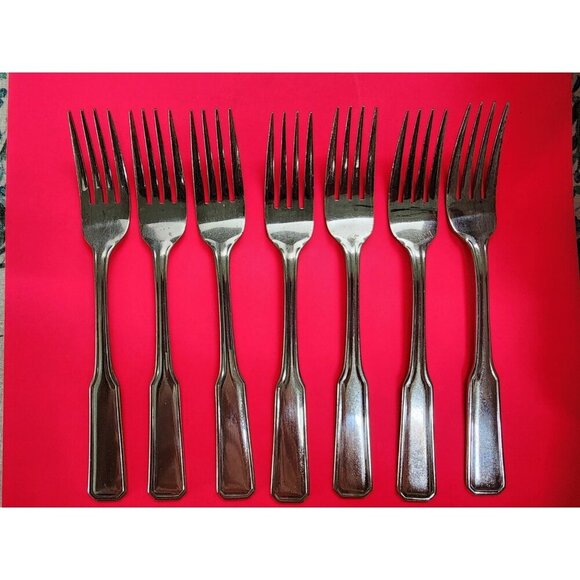 Rogers Stainless Korea Lot of 7 Dinner Forks Unknown Pattern