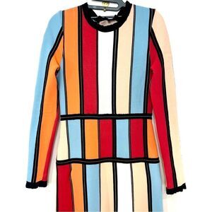 Roksanda Cutout Multi Color Block Stretch Knit Midi Dress Vertical Striped M