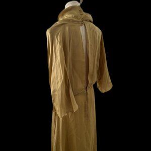 A Roksanda gold silk dress with a cowl neck and a flowing skirt. Sightly open back. Buttons at the top back.
