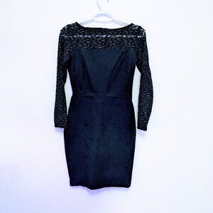 Roland Mouret for Banana Republic Black Dress Sheer Lace Sleeves Flattering Fit