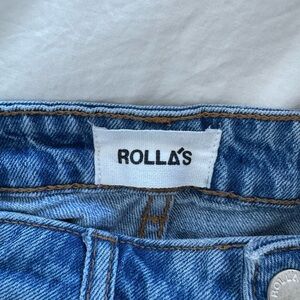 High rise slim jeans by Rolla's. Classic blue denim. Ideal for everyday style.