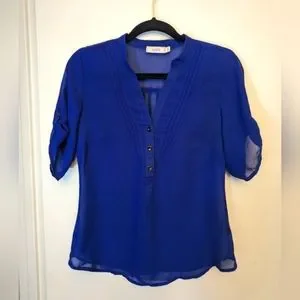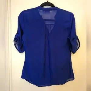 Sheer roll-cuff 3/4 length sleeve blouse.
