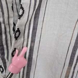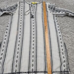 Roller Rabbit Top Womens S Gray White Tunic Tassel Long Sleeve Cotton Beach