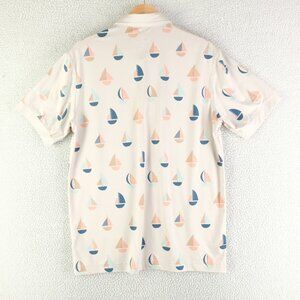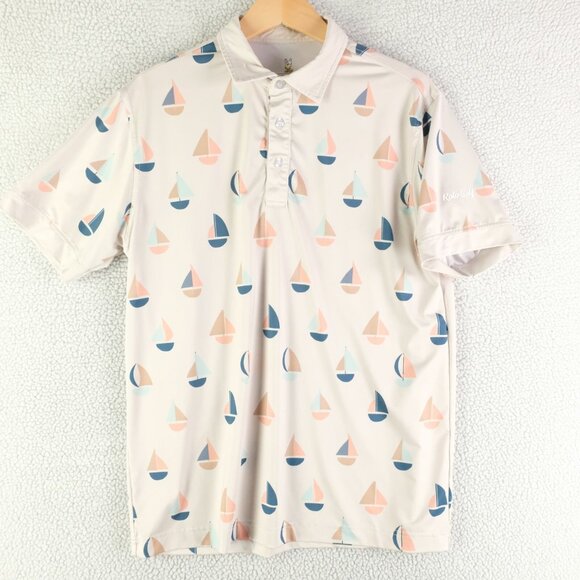 Rolo Golf Polo Mens Medium Beige Sailboat All Over Print Golf Performance
