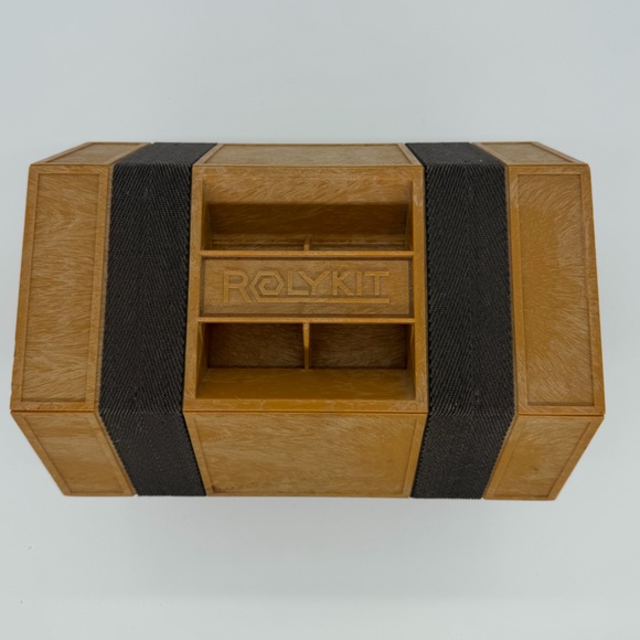 Classic RolyKit expandable storage organizer. Folds into a compact cube and rolls out to reveal multiple divided compartments for craft supplies, tools, sewing, beads, hardware, or hobby storage. A unique and functional vintage piece.