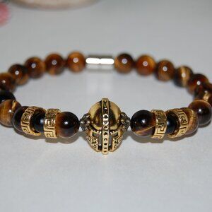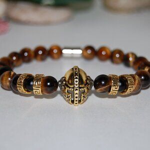 Roman Helmet Bracelet,Tiger Eye Bracelet,Warrior Bracelet,Courage Bracelet