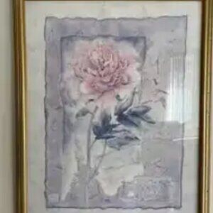 Beautiful impressionist floral abstract in pink tones- Framed in a gold-tone metal frame with a clear plastic protective cover (not glass). Ready to hang and in great condition. Perfect for living room. Art piece dimensions are 25 inches wide by 31 inches tall. I would've loved to hang it up myself but its too big for my taste.