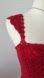 Red square neck top with a full lace overlay, matching beads, and wide crocheted straps. Features delicate scalloped edging at the hem and neckline. Adjustable shoulder straps and 2 loops for a belt. A beautiful and romantic piece ideal for layering, date nights, or styled with denim and boots. Has that timeless Le Château romantic glam look from the 2010s. So pretty IRL with all the little beads!